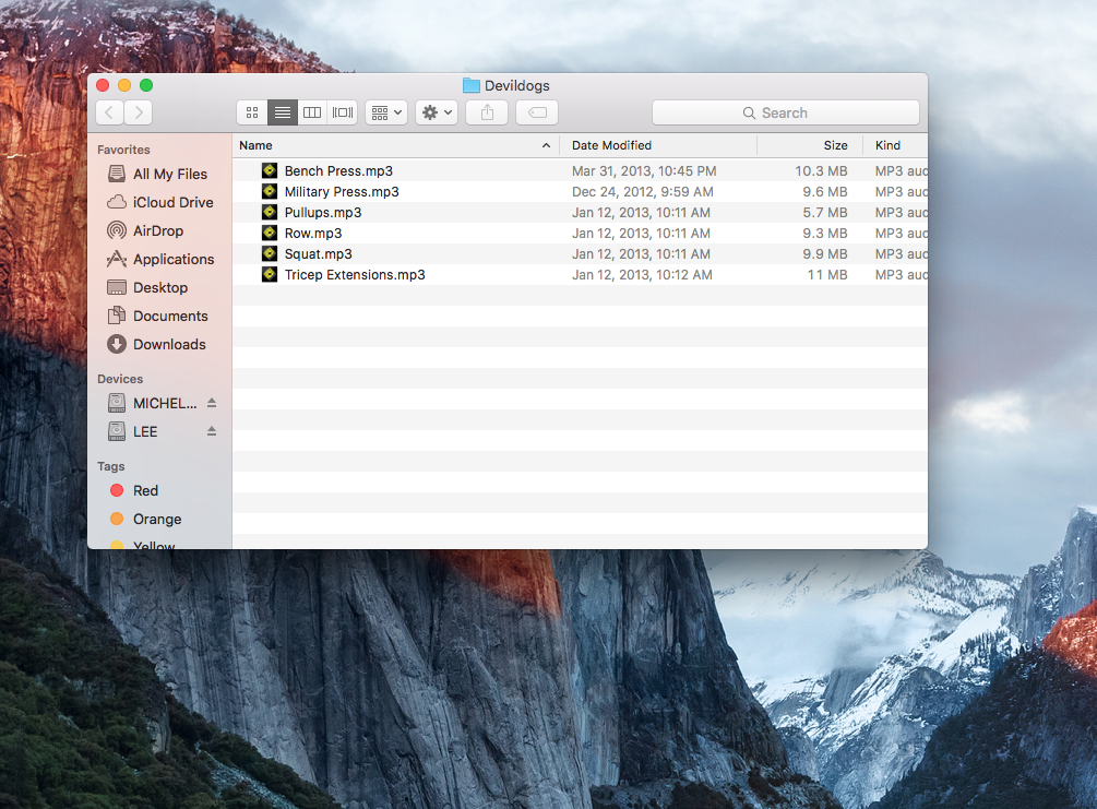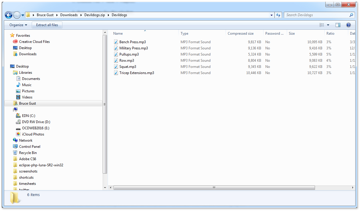 3) Double click on the zip file. It will open up and you'll see the "Devildogs" folder (In this instance it's "Devildogs." It's be the name of whatever product you downloaded / purchased). Double click on the "Devildogs" folder and you'll see your mp3 files.